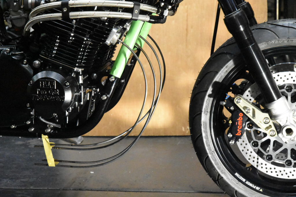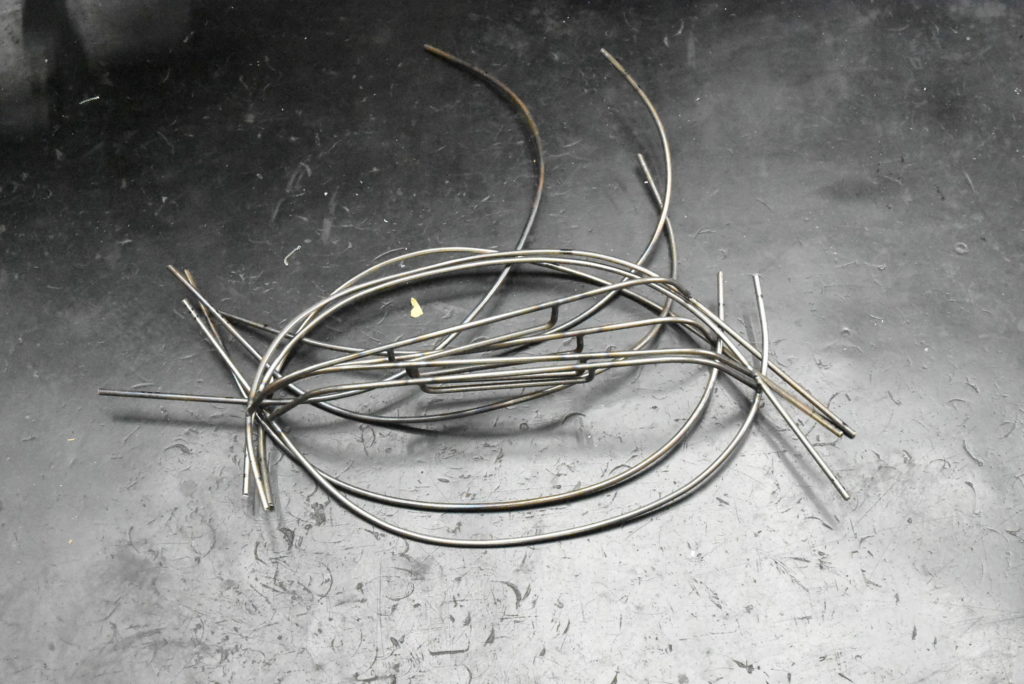GSX1100S カタナ 1981年式 ワンオフマフラー製作 週末&月末までに4台ほど入荷予定ですが店に入りません!!箱類を片付けて1台分確保!フランジボルトを旋盤でステン切削ボルトにしてエキパイカラー+排圧ピースをセット確認しました! 手曲げ用の治具の確認!少し修正しながら曲げ治具セット完了♪