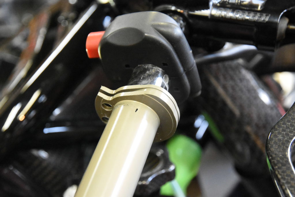 モンディアル ピエガ SPLスロットルインナーパイプがあるのを忘れてました!中にテフロンが圧入されて低速はロースロで中速からはハイスロになるみたいです!!これに交換・・・と簡単にいかず、ワイヤーの作り変えです!新品のカワサキ純正を加工です!長さも変えるので大変で、また合わせながらで半日かかり何とか完成しました♪ スロットルワイヤーの曲がり具合も良い感じになりました♪ カーボングリップが抜き取り出来るか?心配です!