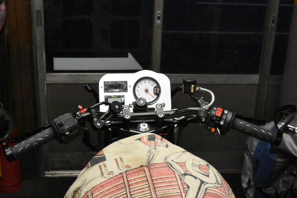ゼファー750 メーター カスタム 随分時間がかかってしまっていて、本来三日で終わる予定の見積りなのですが・・・! 図面を書くときにパネルに貼りつけで簡単にいかなければいけないのですが、パネル上でメーター類の高さを合わせたくなってしまいました♪ スタックメーターの固定もパネル上にボルトが来ない様にと拘ってしまいました! さすがに終わらせないと思い少し確認を甘くしたらパネルの穴位置を間違えて空けてしまいました・・!溶接で埋めてサンダーで削って研磨をして証拠隠滅して空けなおしました♪ さらにタイムロスですね♪ カウルステーにパネル用のボスを旋盤で削って何度の位置合わせをしながら仮付けをしてカウルを付けて確認して本溶接をしました!念のためのクリアランスで角丸を少し大きくしました!カウルステーを塗装して車体に装着、メーター類をメーターパネルにセットしてカウルステー固定成功!!明日 配線を終わらせたい!?!?!?