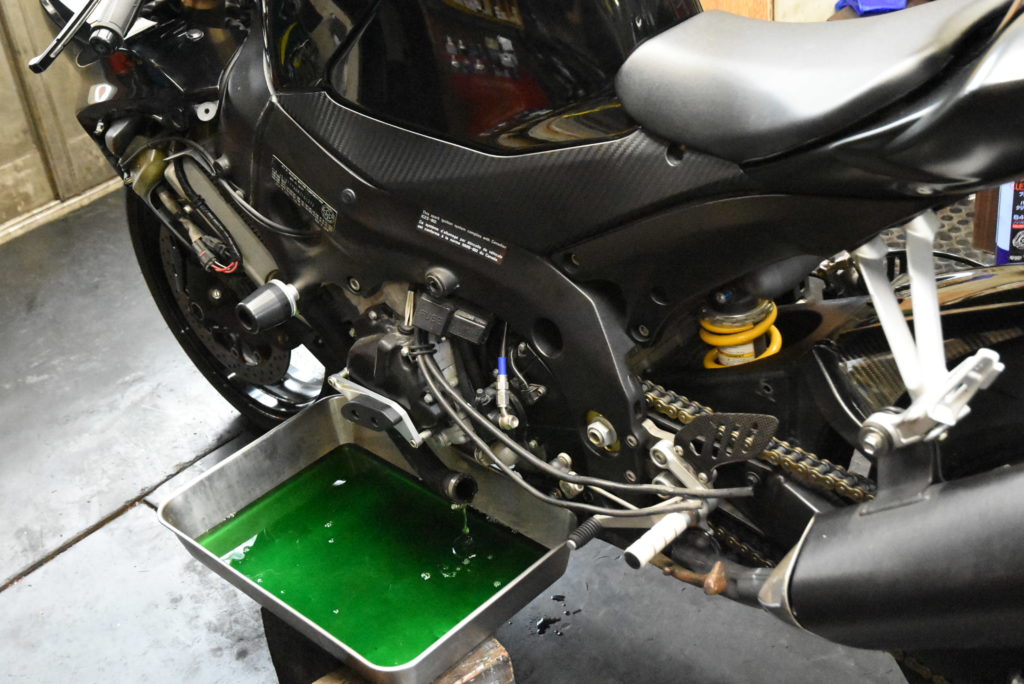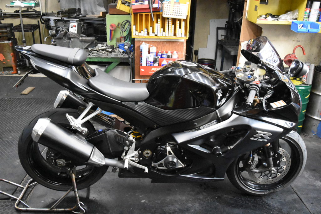 GSX-R1000 K8 車検準備です!エアー漏れをしていた純正のゴムバルブをアリート製Lバルブに交換、ほぼタイヤ交換と同じ作業♪ マフラーをノーマルに戻して前後ブレーキ&クラッチオイルをyaccoで交換!ラジエター液の交換!最後に点検で車検準備終了! 残すはワンオフステンハンドルバーエンド製作♪