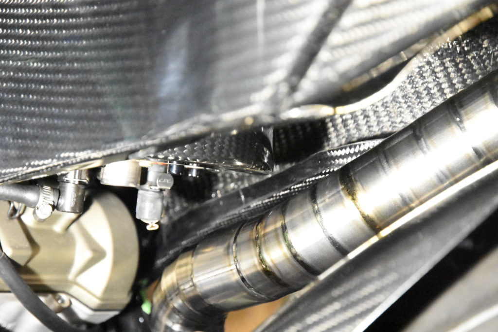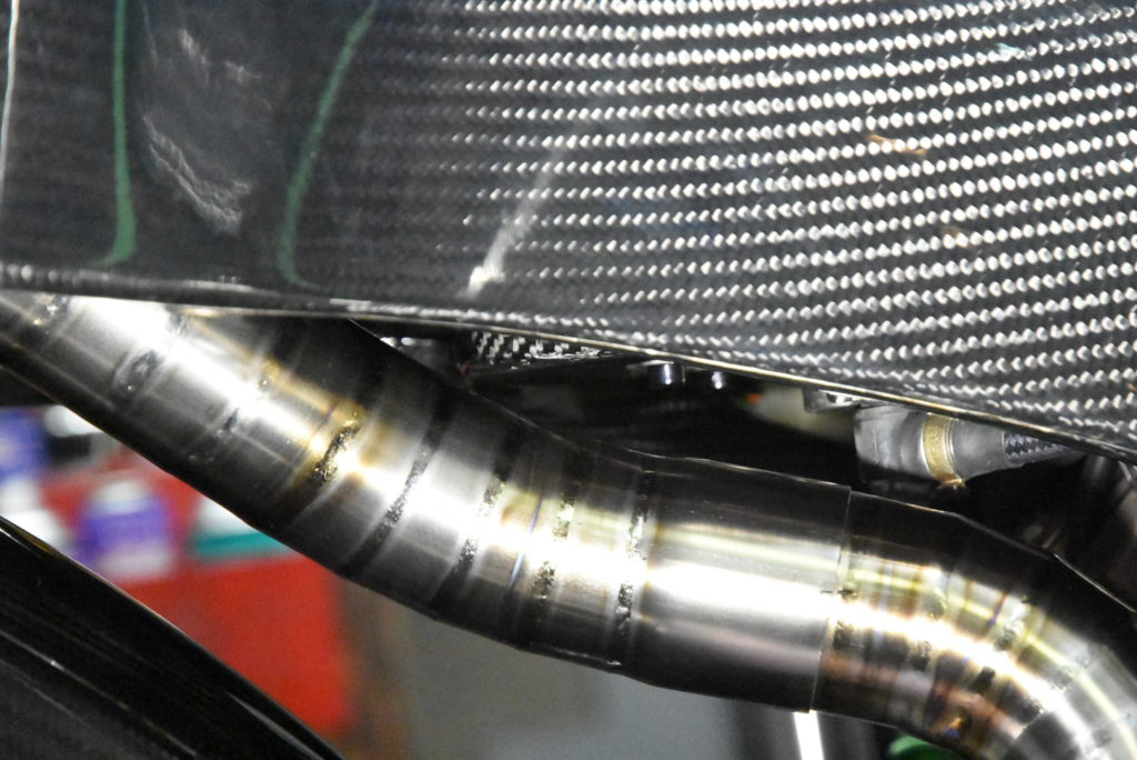モンディアル ピエガ マフラー 製作 カーボンタンクを取り付けたらクリアランスがほぼ無し(一枚目の写真)でしたので角度変えの作業です! 7か所位カットして捻り修正してタンク下部とフューエルホースジョイントのクリアランスを確保しました。指一本以上空けましたので大丈夫です♪ 念の為タンク下部に耐熱シートを貼って対策します! 明日 左サイドが出来ると思います!