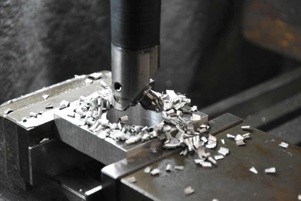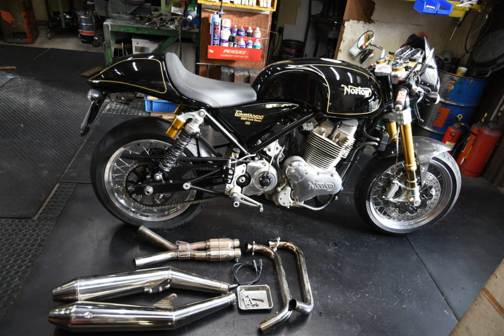 ノートン コマンドー 961 マフラー製作の方を先に進めることしました! ノーマルマフラー外して図面通りにアルミ板をフライスにセットして穴あけ加工しました!後 外周をフライスできれいにして二つに割ったらフランジ完成です♪ クラシックロックを聴きながらチャカチャカ出来ていきます♪