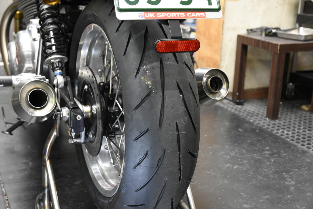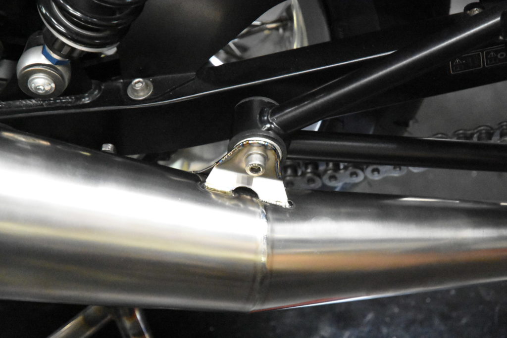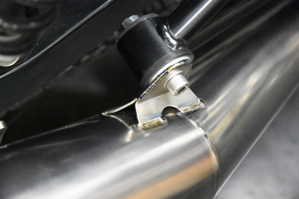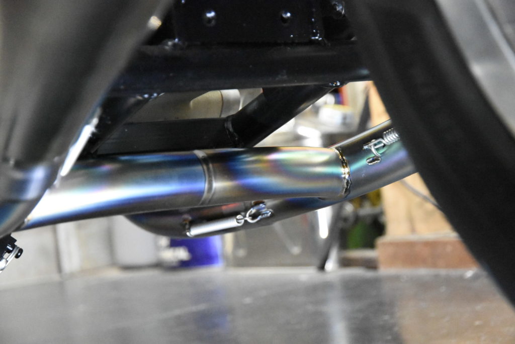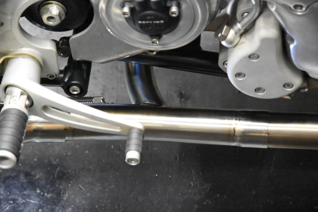 ノートン コマンドー 961 ワンオフマフラー製作 サイレンサーステーの製作です!角度付きテーパーサイレンサーにステーを合わせる作業が毎度の事大変です! 続いて連結パイプの製作です!エンジンがマイルドになって音も静かになるので取り付けた方が良い加工です!取り付け作業はとても大変で連結加工後、左右のエキパイにスーと差し込みが条件なので溶接歪など修正しながら何とか出来ました♪ 後はO2センサーボス取り付け・消音バッフル製作・サイドスタンド製作で完成です!もう少しです♪