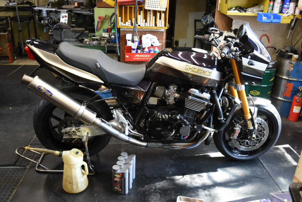 ZRX1100 NJ-1 BS S23 にタイヤ交換! エンジンオイル交換で yacco MVX1000 4T 5W-40 に交換! マフラーを集合から外してオイルフィルター交換!! もう14.326km走行♪ T様 ありがとうございます! 早速 お引き取りです♪