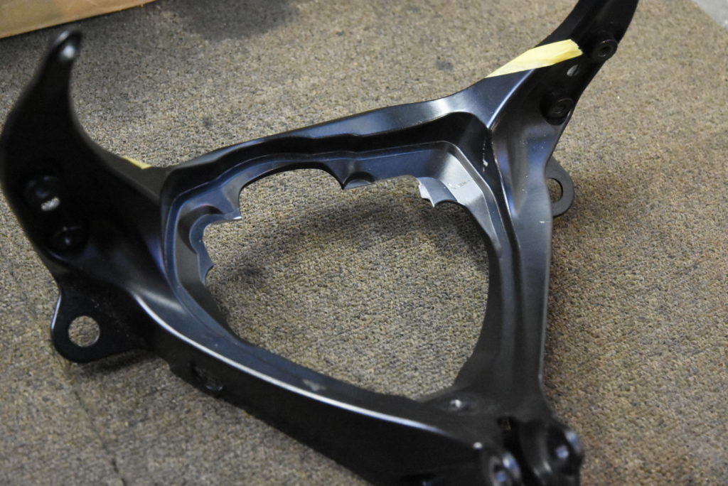 GSX-R1000 K5 aim mxs 1.3 strada メーター の取り付けです! ノーマルのブラケットに装着するようにAIMメーターステーをフライスで削って穴あけをしてプレスで曲げて何とかここまで出来ました!!ノーマルのブラケットをもう少し加工しながらメーターステーを合わせて削っていきます♪