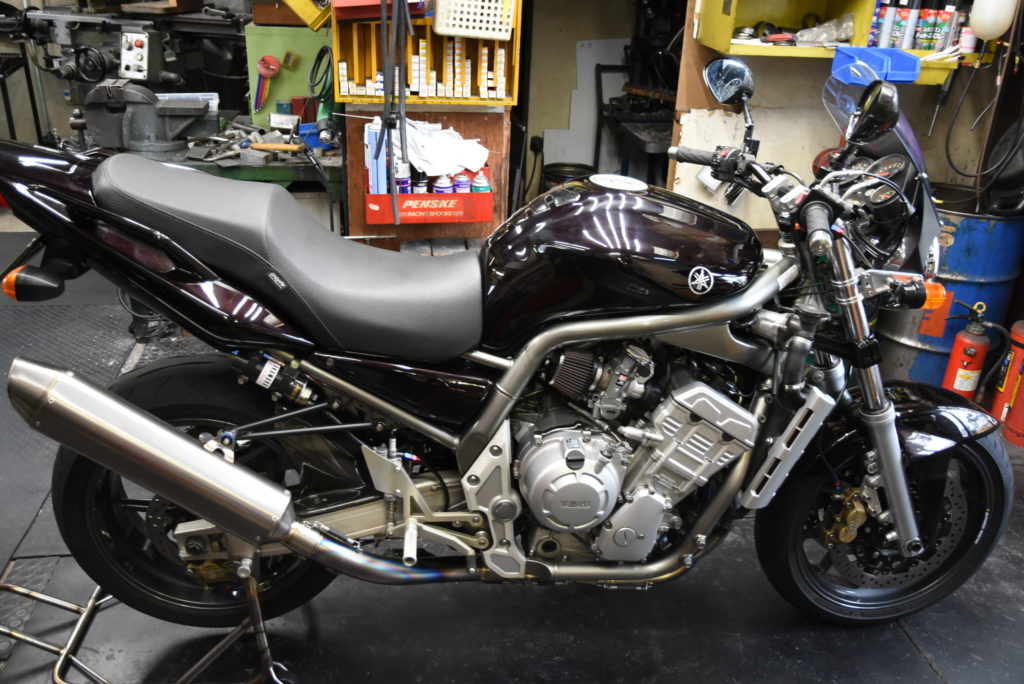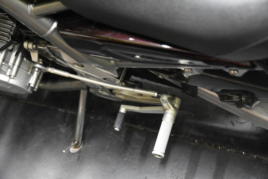 FZS1000 転倒 修理 曲がっていたステップブラケットとチェンジロッドを外して修正!ブラケットはバーナーで温めて修正かなり大変でした! チェンロッドも真直ぐに修正! チェンジペダルベアリングも修正!軽く磨いて組付け完了♪ クラッチレバーもパーツ入荷で交換完了! Y様 お待たせしました!!