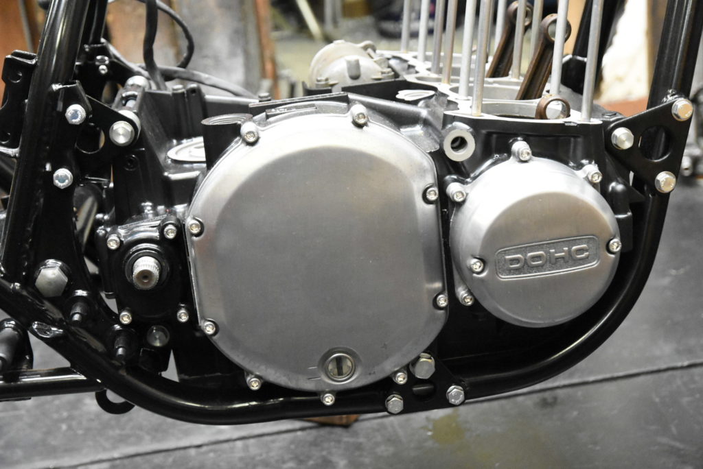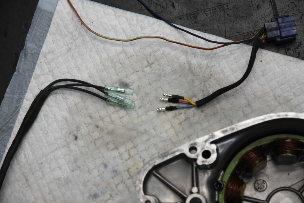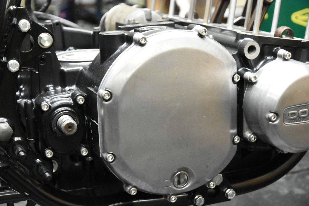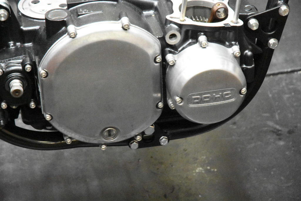 Z-2 メンテナンス 各カバーの取り付けです。ゼネレーターの配線カバーを熱収縮チューブで手直しをして余分な配線はカットしてギボシを新品に交換してスターターワンウエイクラッチ&マグネットを組付けてカバーを装着♪ クラッチカバー&パルスカバーをステンレスボルトで装着♪ “”何となくバフ!”も半艶ブラックのエンジンと丁度良いバランスです!!