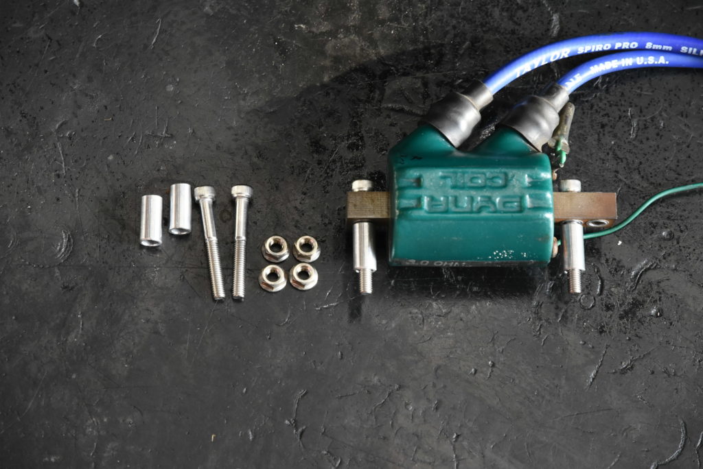 Z-2 メンテナンス パルスコイルの配線を磨いて取り付け!イグニッションコイル&プラグコードとレジスターを掃除して専用のカラー製作してステンレスボルトで取り付けました!レジスター配線カバーも熱収縮チューブできれいにしました♪ ヘッドライトステーもスコッチブライトで磨いて取り付け!!なかなか磨いて&取り付けなので進みませんがボチボチ進んでいます♪