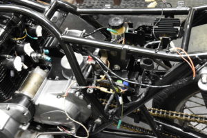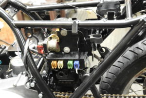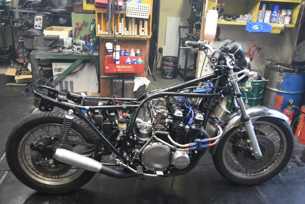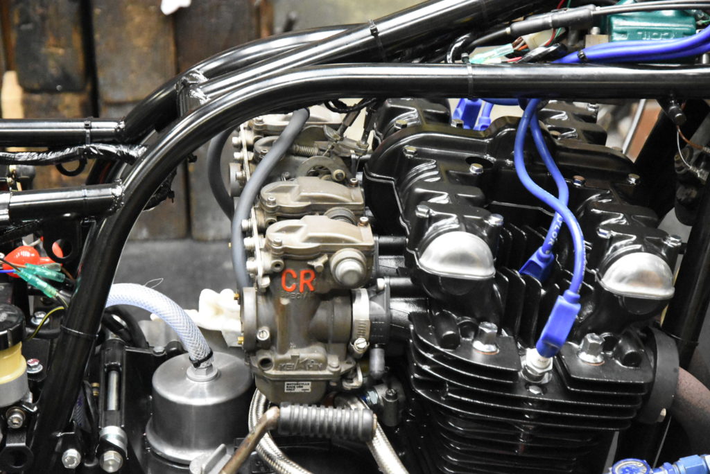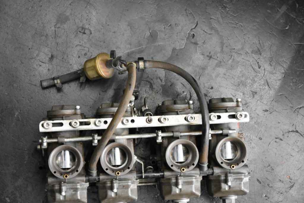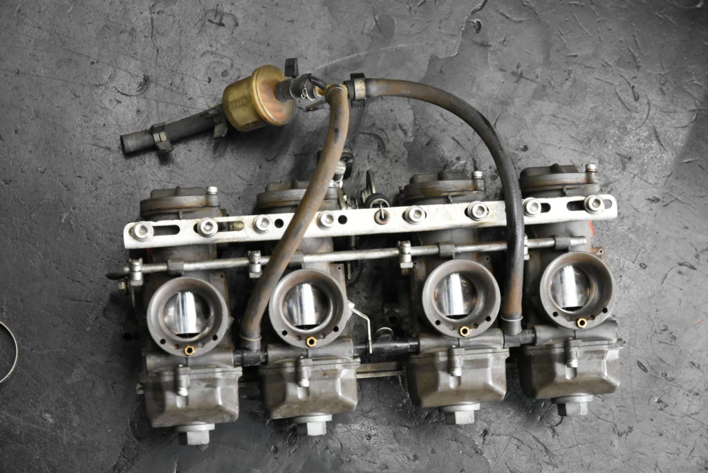 Z-2 メンテナンス スターターリレーにセルモーターを繋いでセルを回してカムシャフトまでの油圧の確認をしてプラグの火花を確認してOKでした!キャブレターの燃料ホースがカピカピでしたので燃料フィルターと共に新品に交換! キャブレターのをインマニにセットして燃料を点滴でキャブレターに入れてエンジン始動!!! 一発で始動で静かで安定しています♪ 車体のもろもろパーツを取り付けて本日終了!!
