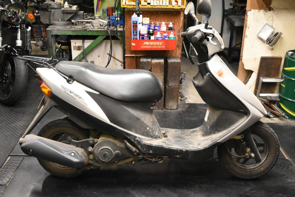 アドレスV125 メンテナンスで入庫です! 差し入れに毎回野菜をたくさん持って来てくれます♪ とてもおいしい野菜なんです!!アドレスV125のメンテが終わったら入れ替わりにカーボンファンネルのZX-10Rが入庫しますので楽しみですね♪ K様 いつもありがとうございます!!