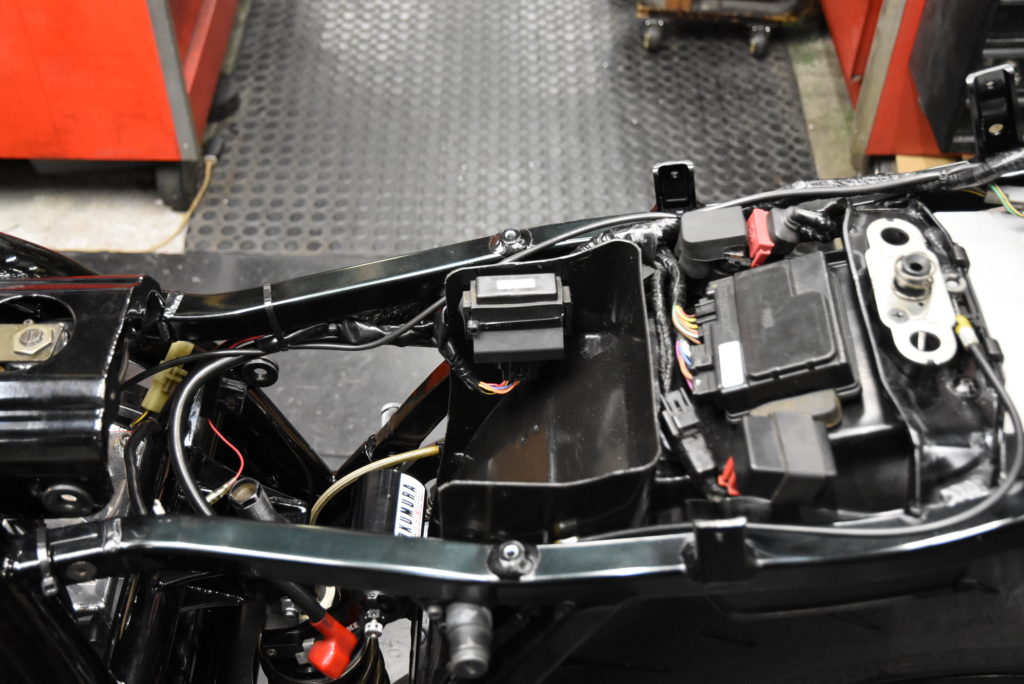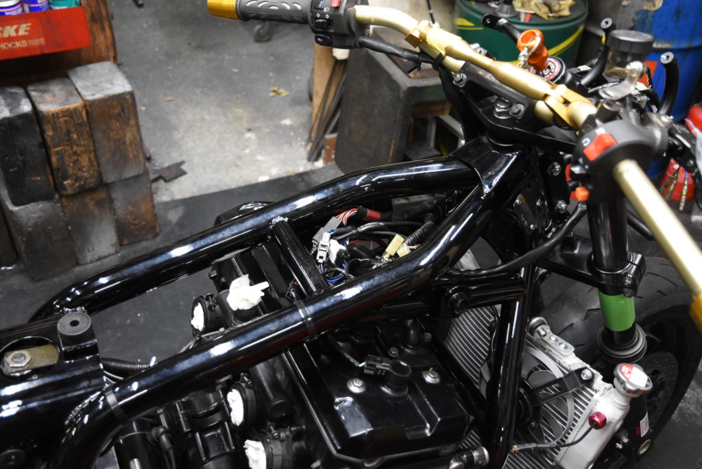 今日は配線まとめです。ラジエターのWファンカプラーを二股カプラーに加工してメインハーネスへカプラーON!ファンスイッチのカプラーを探してダイレクトカプラーON!その配線をメインハーネスへカプラーON!サイドスタンドスイッチカプラーを探してカプラーON!それぞれの配線をフレームにはわせてタイラップで固定しました。スッキリまとまりました♪ カプラーで接続の拘るのは、これからスタックメーターの取り付けなどの配線トラブル時に原因を見つけやすくする為もあります!言い換えるとトラブルを起こさないためにもシンプルにカプラーONです♬ ハンズマンには抵抗・リレー・ダイオード・スイッチ・配線各種はありますが専用カプラーは無いのでネットで探します・・・これがとにかく時間がかかり&間違いリスクがあります!それでもハーネス製作後の電気トラブルはその何倍も時間が必要になり心が折れそうになります!なので一般の方の車両は対応できません!こちらの大変さを理解していただける方の車両のみです!ご理解の程よろしくお願いいたします。ヨシムラ PRO-GRESS2が入荷しました。これは上手く出来そうです♪
