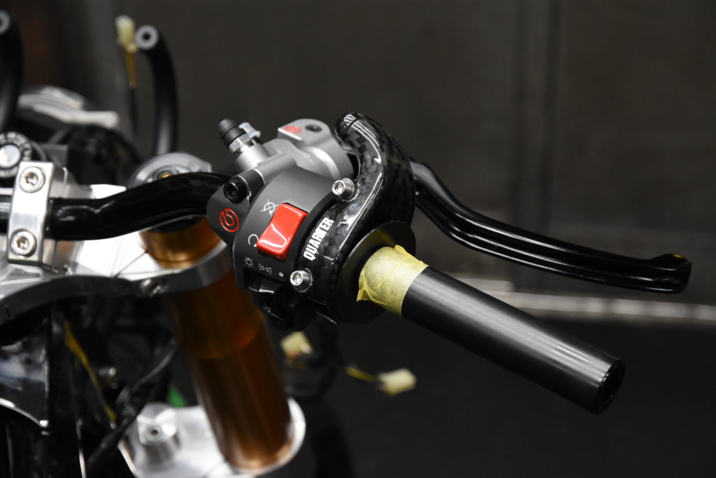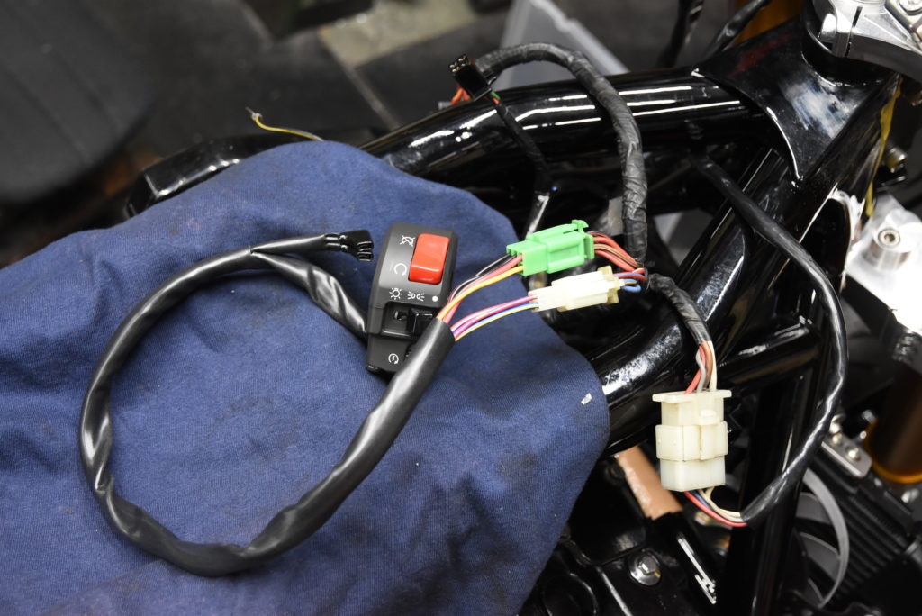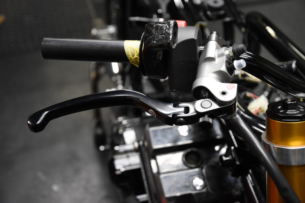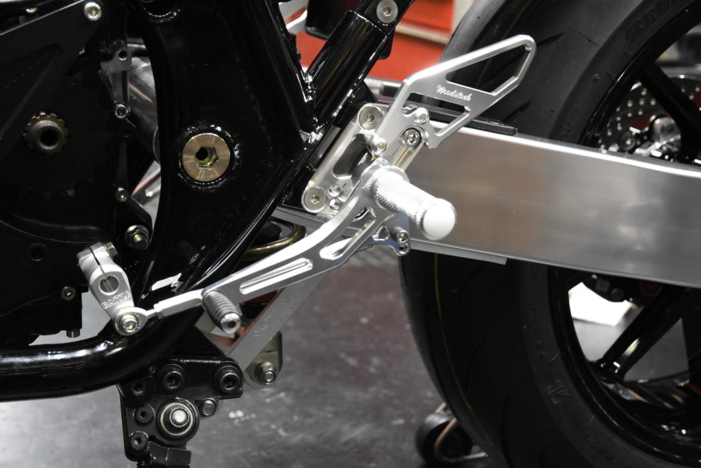 ZRX1100 NJ-1 オルタネーターのカプラー・ギボシ端子交換&配線熱収縮チューブ処理、OK!ピックアップコイルのカプラー・ギボシ端子交換、OK!ファンハーネス製作、OK!ファンスイッチカプラー&配線熱収縮チューブ処理、OK!左ハンドルスイッチのカプラー交換(3本不明線有り)、OK!右ハンドスイッチのカプラー確認、OK!オイルプレッシャースイッチ&ニュートラルランプセンサーの配線、OK!でほぼ配線は把握できました!後、バッテリーリードとAIMメーターハーネス製作です。確認は完成まじかにならないとランプ類の確認が出来ません!ウインカーも未だ無いんです♪ ステップは昨日の嘆きが届いたかも??ウッドストック製のステップに決めてFAXをしたらその日に発送してくれて本日夕方には届きました!!凄く1週間得した気分です♪ 早速取り付け!!ポジション確認・・・OKです!ほぼオーナー様の希望ポジション!!作りはレース関係なのでセンス&精度など全く問題ないです!ウッドストックは、お勧めハードパーツメーカーです!!ブレンボ 削り出しブレーキマスター&カーボンスロットル・シートスタール加工のシートを取り付けて今日は随分進んだ気がします♪