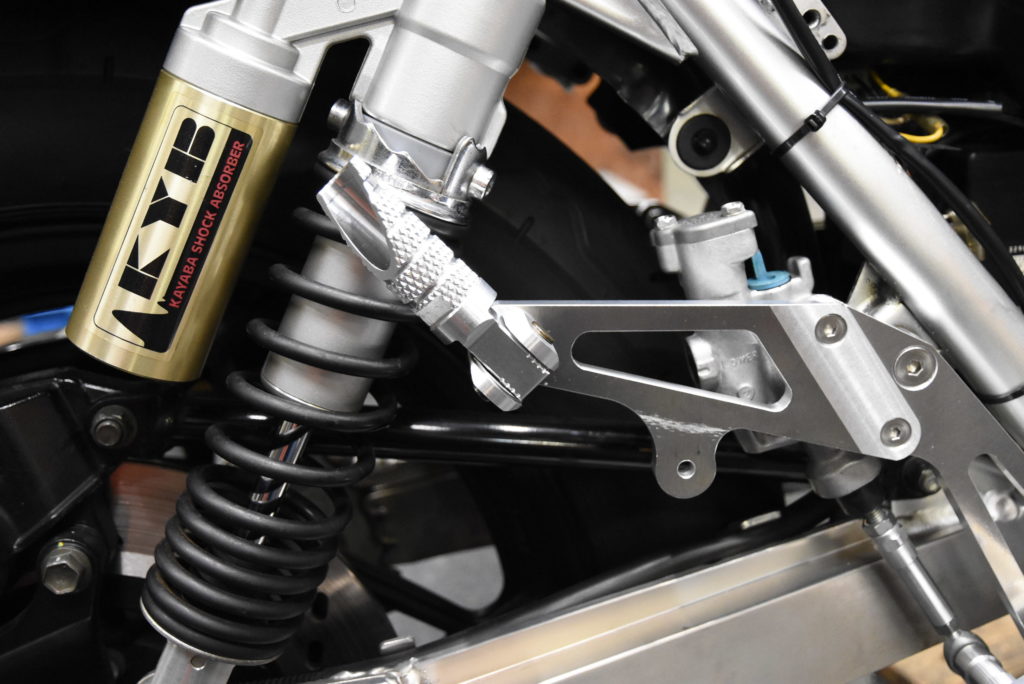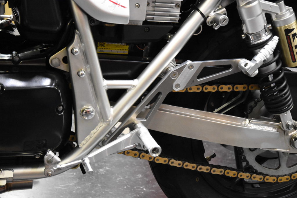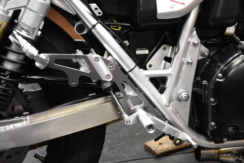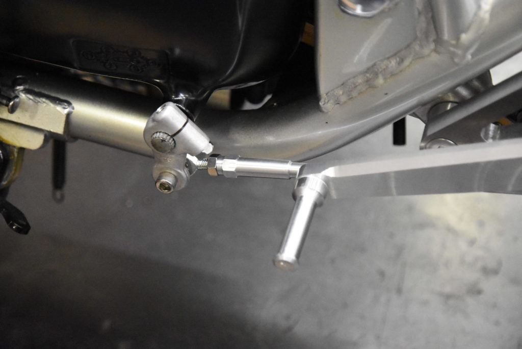 GSX1100S カタナ ステップ 製作 何とか2セット完成!たくさんカラー類を旋盤で削ってフィッティングしました♪ ファイナルと81年カタナのマスターシリンダーが異なるのでそれぞれのプッシュロッドを製作しました!チェンジサイドは全く同じです!タンデムステップのリアショックとのクリアランスも予定通りでスプロケット側が狭くなる!!下の2枚の写真が81年カタナの方です!この後ファイナルカタナの方をシルバーアルマイトに出します!それが出来上がってから81年カタナの黒アルマイトに出します!指示が大変で間違わない様にそうします!