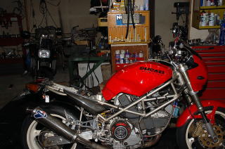今日は午前中に、GSX1100Sカタナとドゥカティ998納車。 午後からは、やっと完成したドゥカティ916SPS納車!!! のはずが・・・ 今朝の試運転のときまでは調子もよくエンジン快調だったのに・・・ いざ納車!!!というときに、急にエンジンのかかりが悪くなり、不機嫌に・・・?。 もともとちょっと不調だった電気系を、もう一度点検整備をすることになり、その前に、オーナーさん、少しだけ乗ってみたいということで・・・ なんとかエンジンをかけて、いざ出発〜っ!!! でも・・・やはり、そう簡単に機嫌は直らず、とうとうすぐに帰還・・・ 納車が延びてしまいました・・・機嫌を直してくださいドゥカティ君・・・(笑)