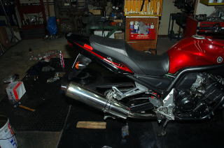 | 途中経過ですが、このような感じで作業中です、ちなみに夕方、R1000(K5)のS君が来て、一言 “このカタナ、また何かするんですかぁ〜???” って言っていました・・・、そうですよね、皆さん、なかなか終りはないみたいね!!!??? (笑) |