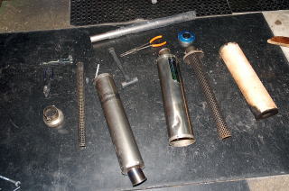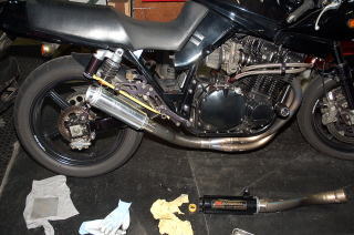 これは、ZZR1100のかな、ZX-9Rのかな??? サイレンサーが、バラバラに分解? されていました・・・ |
